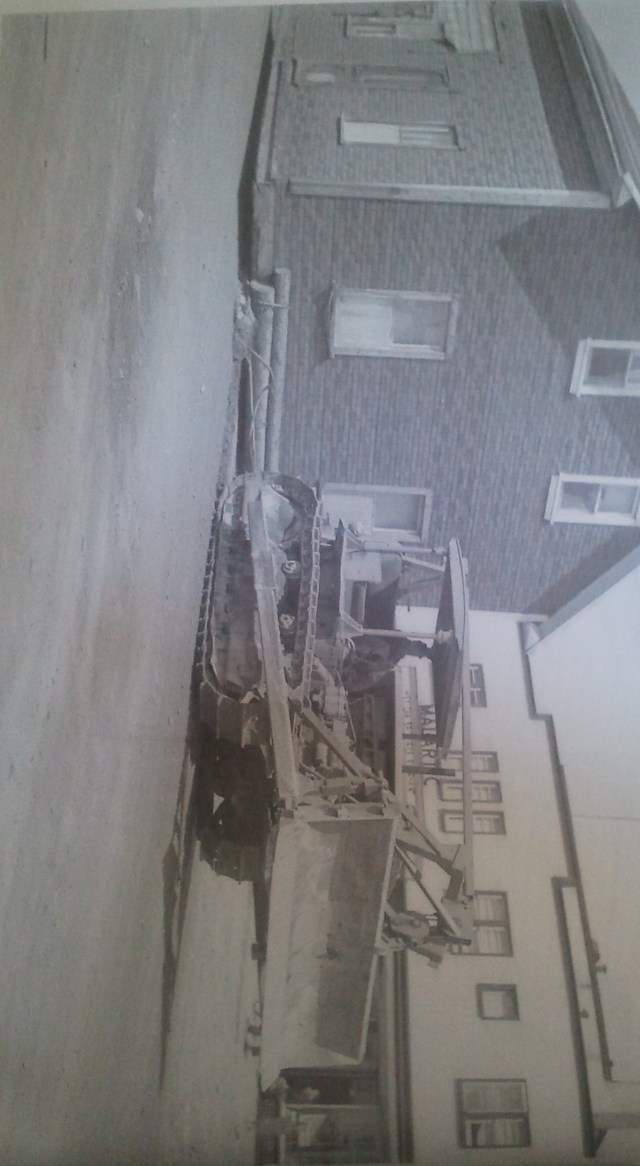 Une modernisation, donc: un déménagement de maison au bullzoder (voir image ci-dessus, source – ANQ : cote E6, S7, P13923, tirée de L’Abitibi-Témiscamingue, terre de bâtisseurs par P.Trépanier et R. Dubé, Éditions GID, 2005). Parfois, la maison est tirée un peu comme cela était fait avec l’essoucheuse, sur des patins fait de rondins de bois, comme ci-dessus. D’autre fois, la maison est levée très haute, déposée sur des blocs, et un le camion ( la float) qui a servi à transporter le builldozer est positionnée sous la maison. La maison est descendue sur la float, puis la remorque s’élance, précédée par le bulldozer qui abat les arbres de part et d’autre de l’étroit chemin afin de faire place à la maison. Dans une grande pente, le bulldozer doit aller se placer derrère la maison afin de l’empêcher de reculer: le bulldozer se colle derrière la maison et retient doucement la maison à mesure que le camion monte la pente. Arrivé dans un champ, les curieux qui suivent pour voir si Douaire va réussir voient que les clôture des champs nuisent au passage de la maison — elles sont tirées du sol par les curieux puis replacées par eux ensuite. La maison fait ainsi 1.5 miles en 1 heure… et se rend à destination au village de Béarn, au Témiscamingue!