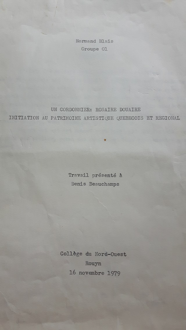 J’ai retrouvé un texte écrit en 1979 par un certain Normand Blais, alors étudiant au collège du Nord-Ouest à Rouyn. Ce texte porte sur le métier que mon grand-père exerçait, i.e. le métier de cordonnier. C’est un travail académique qui a son intérêt, je me permets de le reproduire ici en entier. On se rend compte qu’un cordonnier avait un rôle fort important à l’époque de la colonisation, et surtout avant la mécanisation des travaux de la ferme.