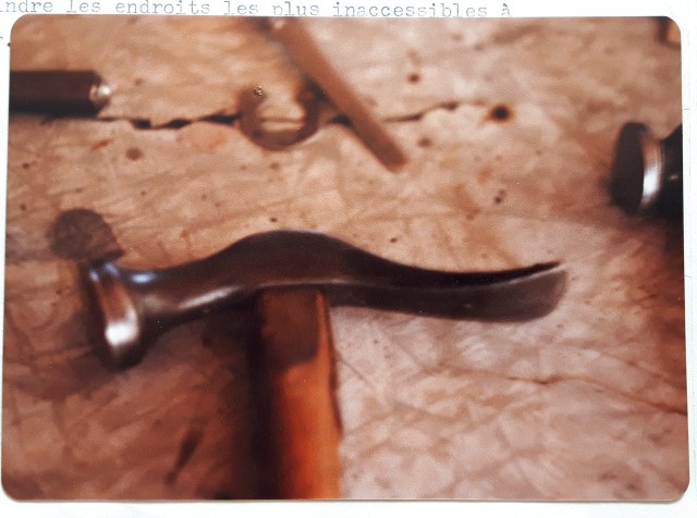 Ce qui frappe le plus, parmi les outils du cordonnier, la panoplie de marteaux que l’on y rencontre. De formes variées,ils permettent d atteindre les endroits les plus inaccessibles à l’intérieur du soulier.